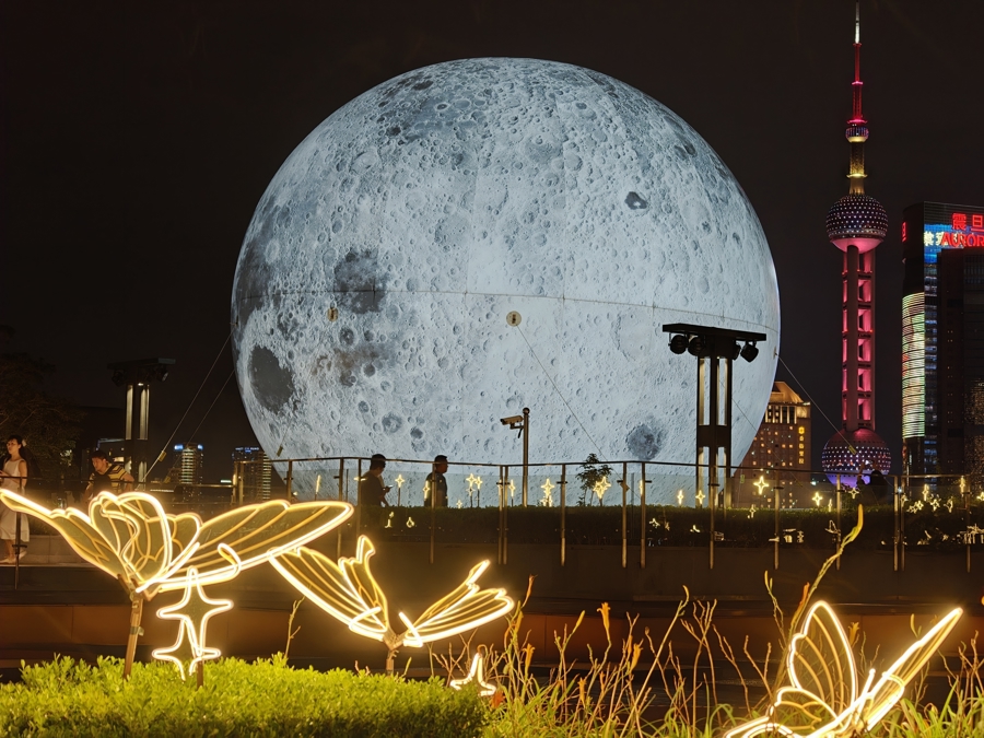 北区广场,18米高的蔚蓝“地球”在光影交错间营造出浩瀚梦幻的星际氛围;南区五楼露台忠程配资,一轮直径10米的超级月亮同步升空,皎洁细腻的月色质感为城市覆上一层柔光。地球与月球“遥相对望”,为市民游客带来沉浸式宇宙主题艺术体验。