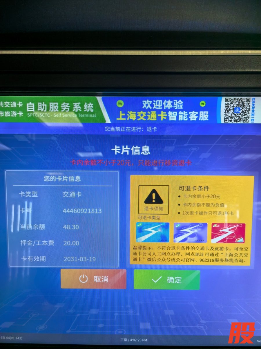 接到严老伯求助后,记者首先致电上海公共交通卡服务热线,工作人员证实了退卡规则:普通可退押金交通卡支持全额退费,卡内余额低于20元,可在地铁站自助服务机办理退卡;余额超过20元(含20元),必须前往指定交通卡公司自营人工网点办理,网点信息可通过官方APP、微信公众号及官网查询。